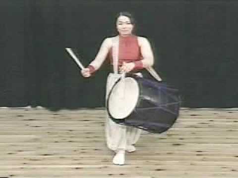 - Player Makes Soft and High Pitch Sound of Katsugi Oke Daiko to the Low Sound of Nagado Daiko
